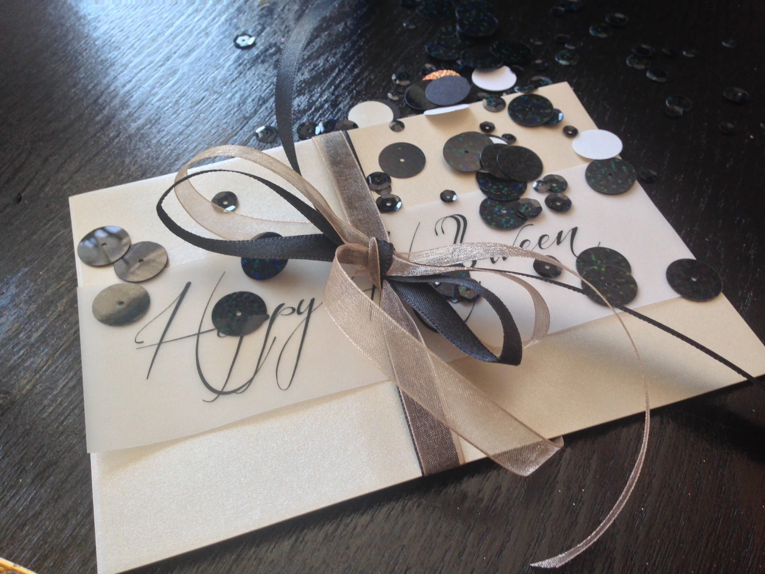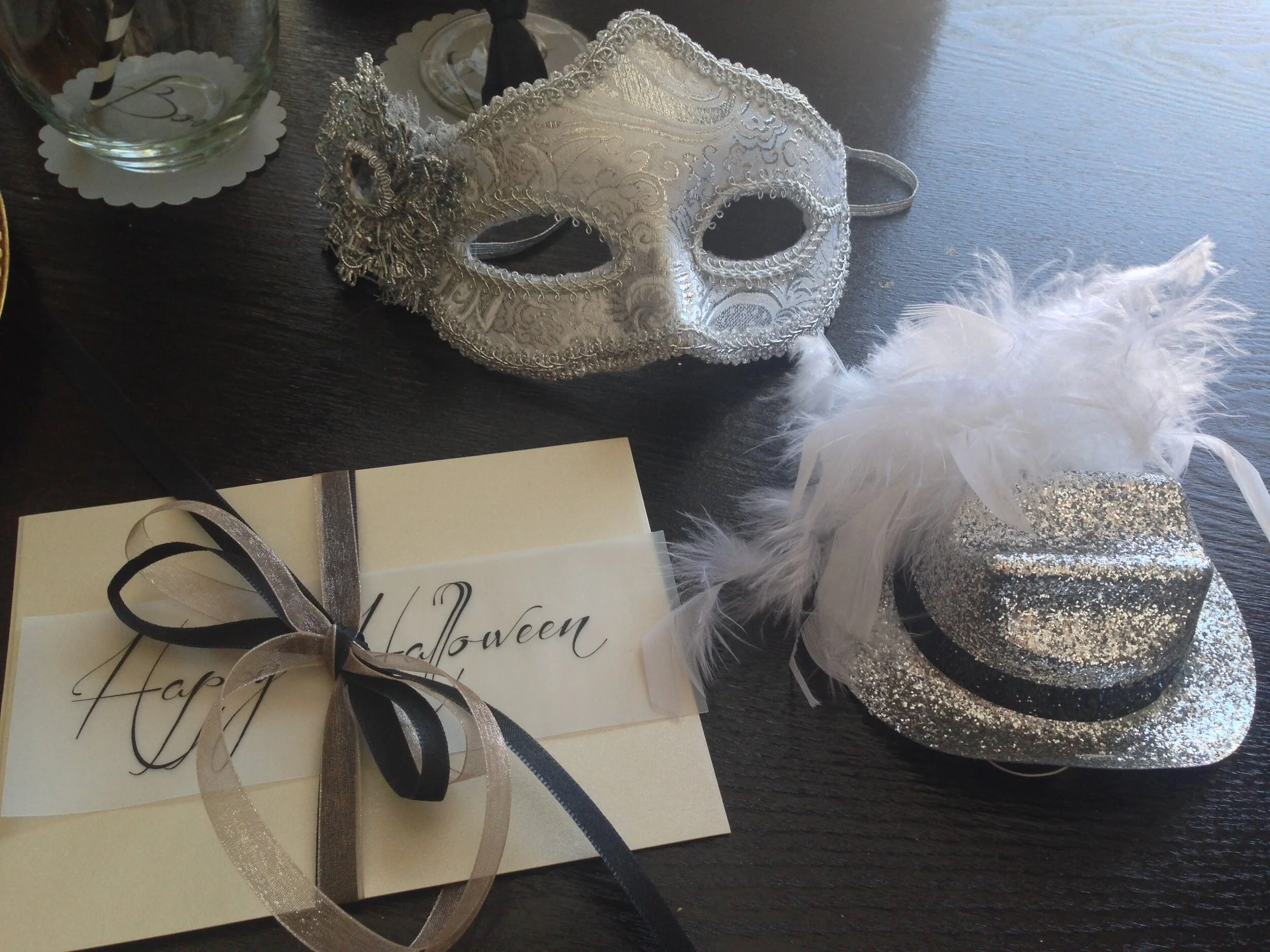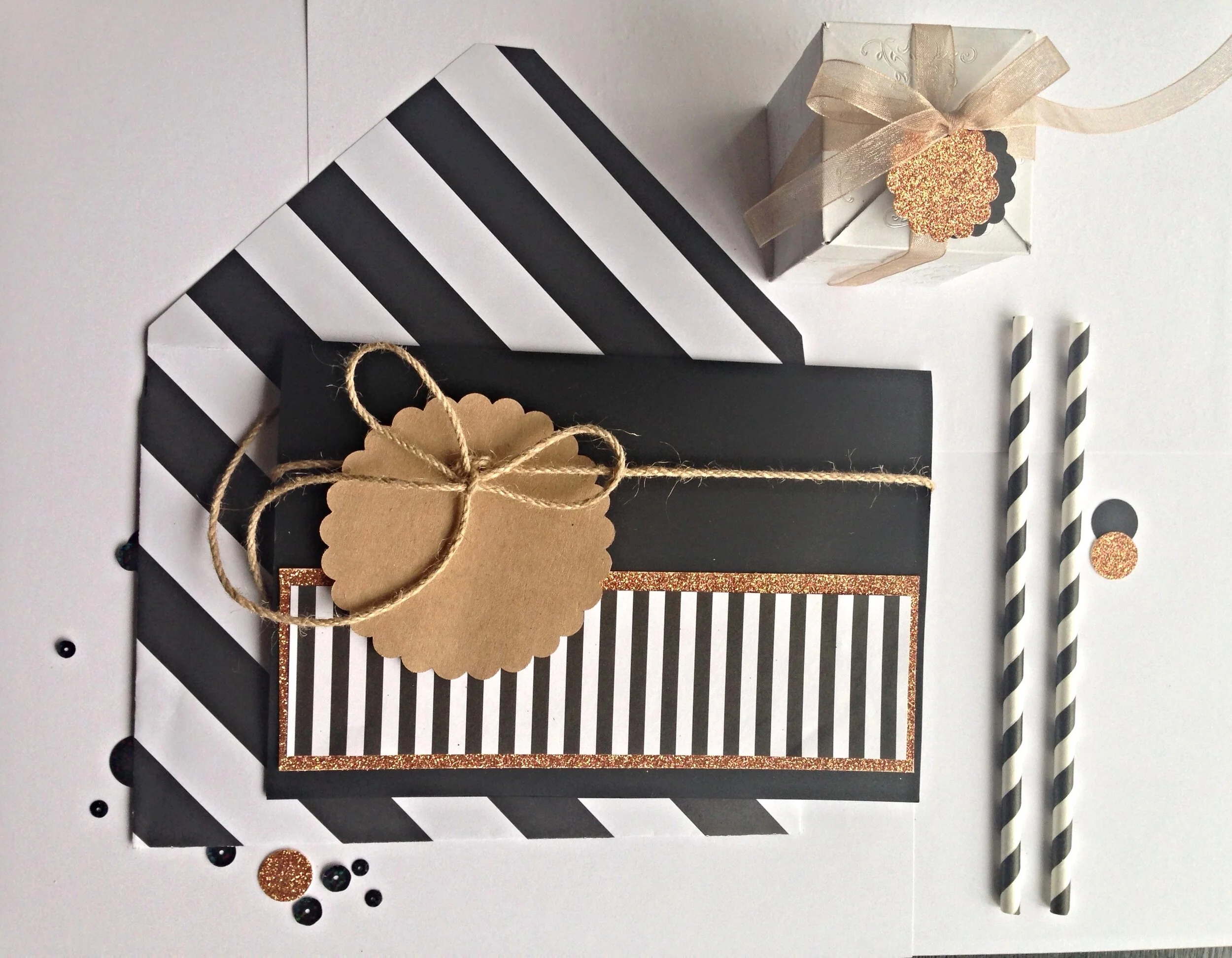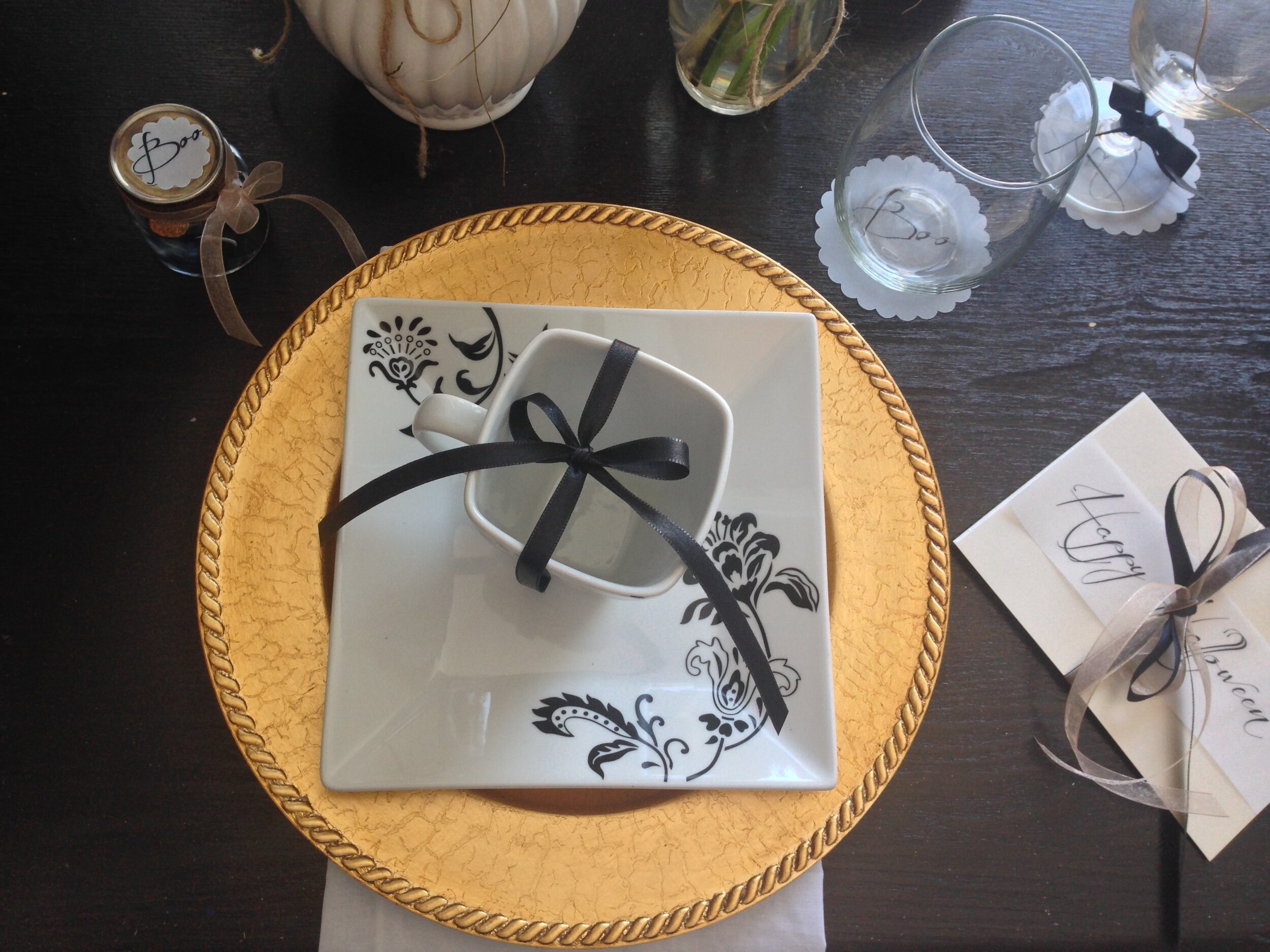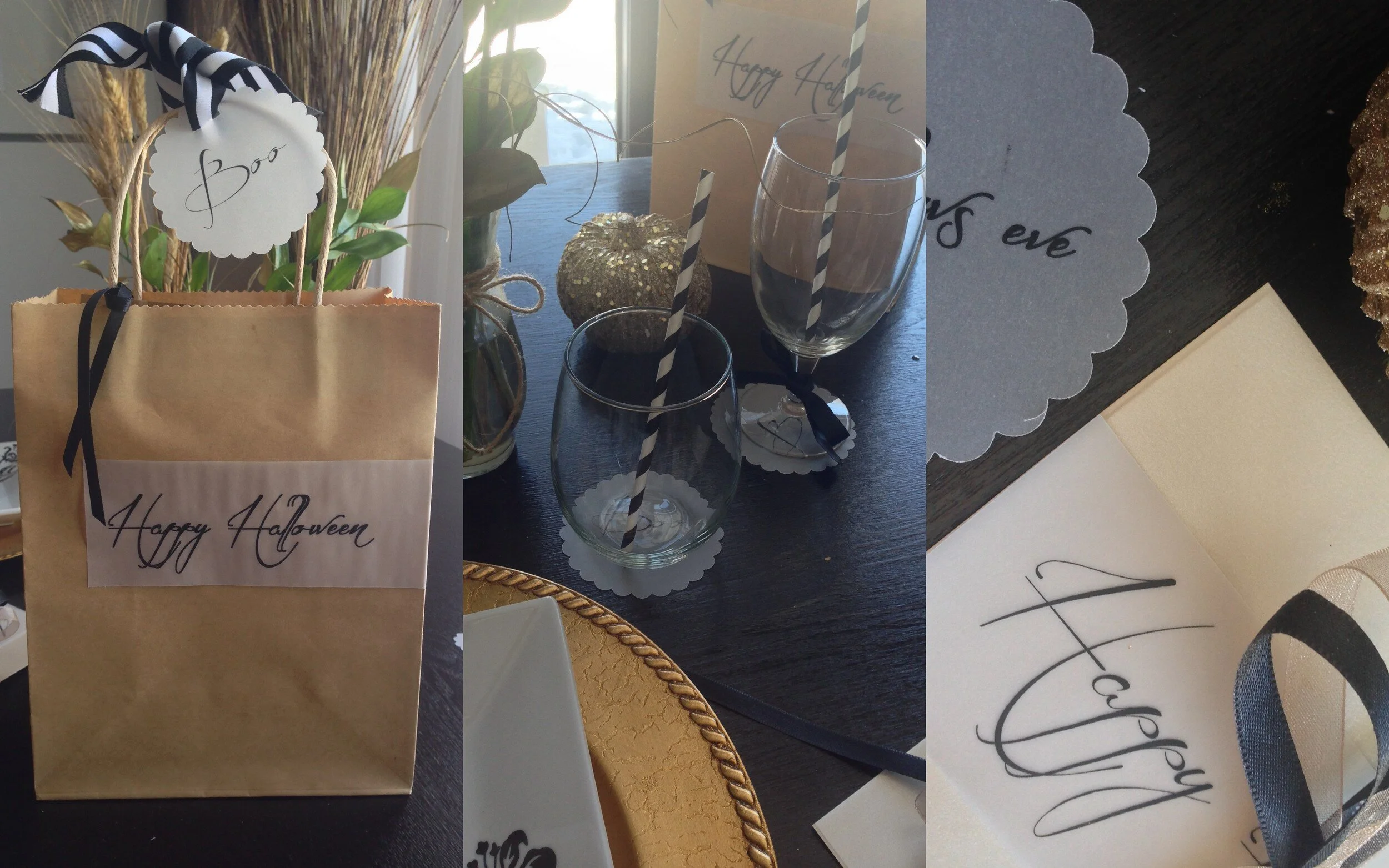 Oh hi there pretties!! Today is my husband's favorite holiday - and although yours truly will be spending it alone - I decided that I would do a pretty and quick little tablescape for myself to eat at tonight while my foxy little pom and I greet and treat our little trick or treaters. I started with a fun idea, lots of confetti and pretty glittered gold paper and added lots of stripes. Just because you may live alone or celebrate a holiday alone doesn't mean you can't dress it up and make it fun.