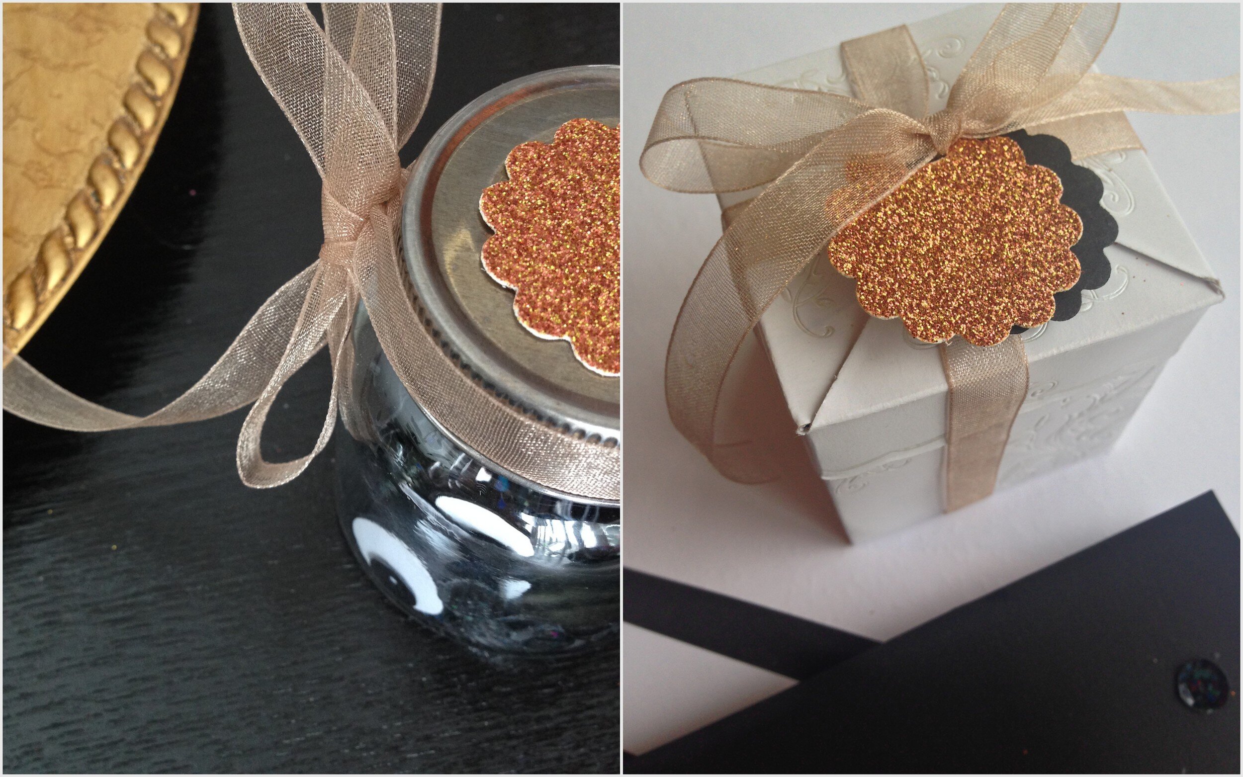 Don't you just love those scalloped coasters? I made these with heavy vellum by running it through my printer and then using my scalloped hole punch. I used them here as drink coasters and again on the take home bags and jars of confetti I put together for trick or treaters.