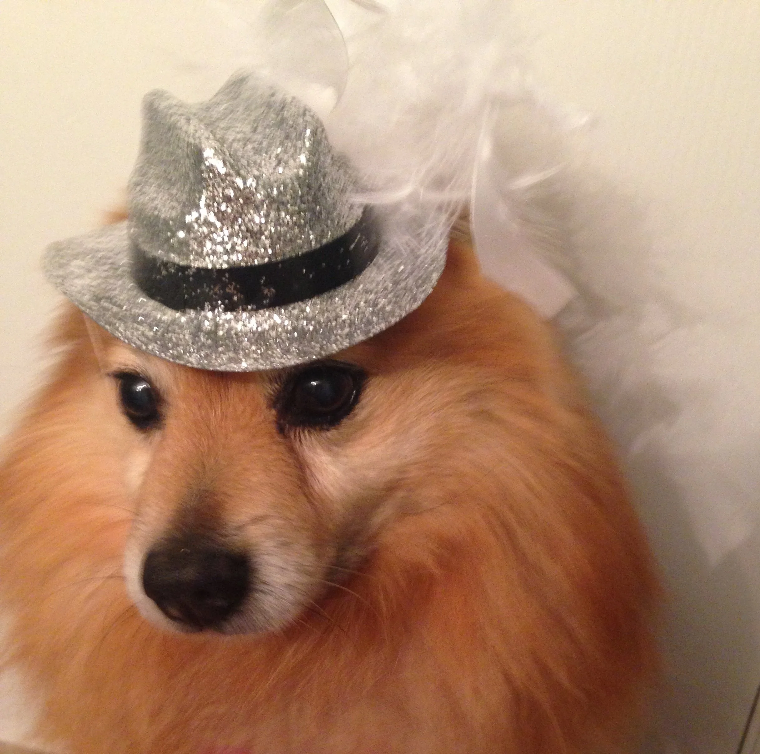 It is quite amazing how dressing up your table, even to eat alone can really make a big difference. Or maybe I'm just crazy and love designing and creating a table scape even if its just for one person? Yeah - I think me being crazy is more likely. Foxy lil pom and I were Parisians this year and I wore a silver masquerade mask and he wore a glittered hat adorned with plumed feathers - I dare say he is the cutest lil pom your eye ever did see.