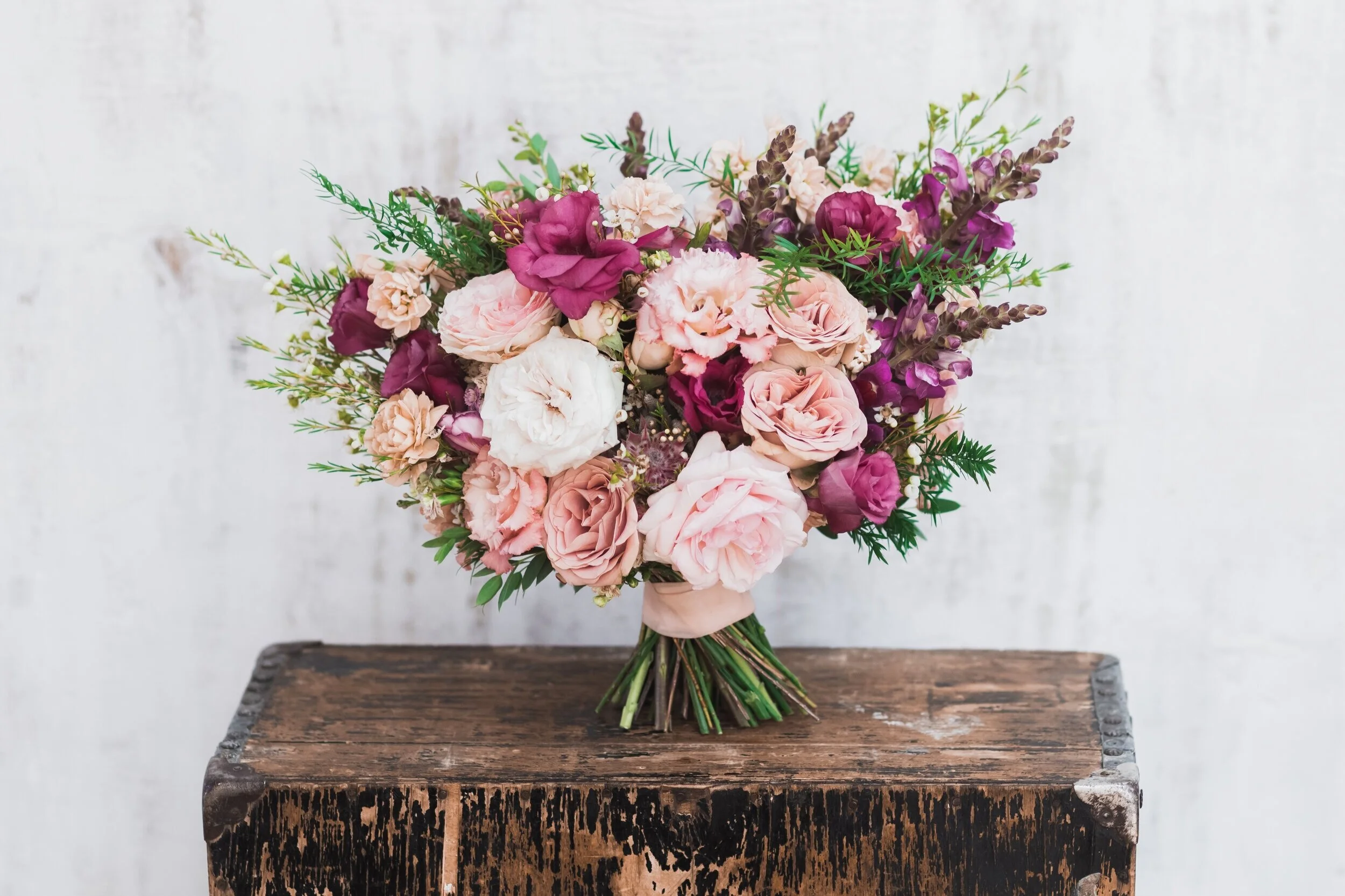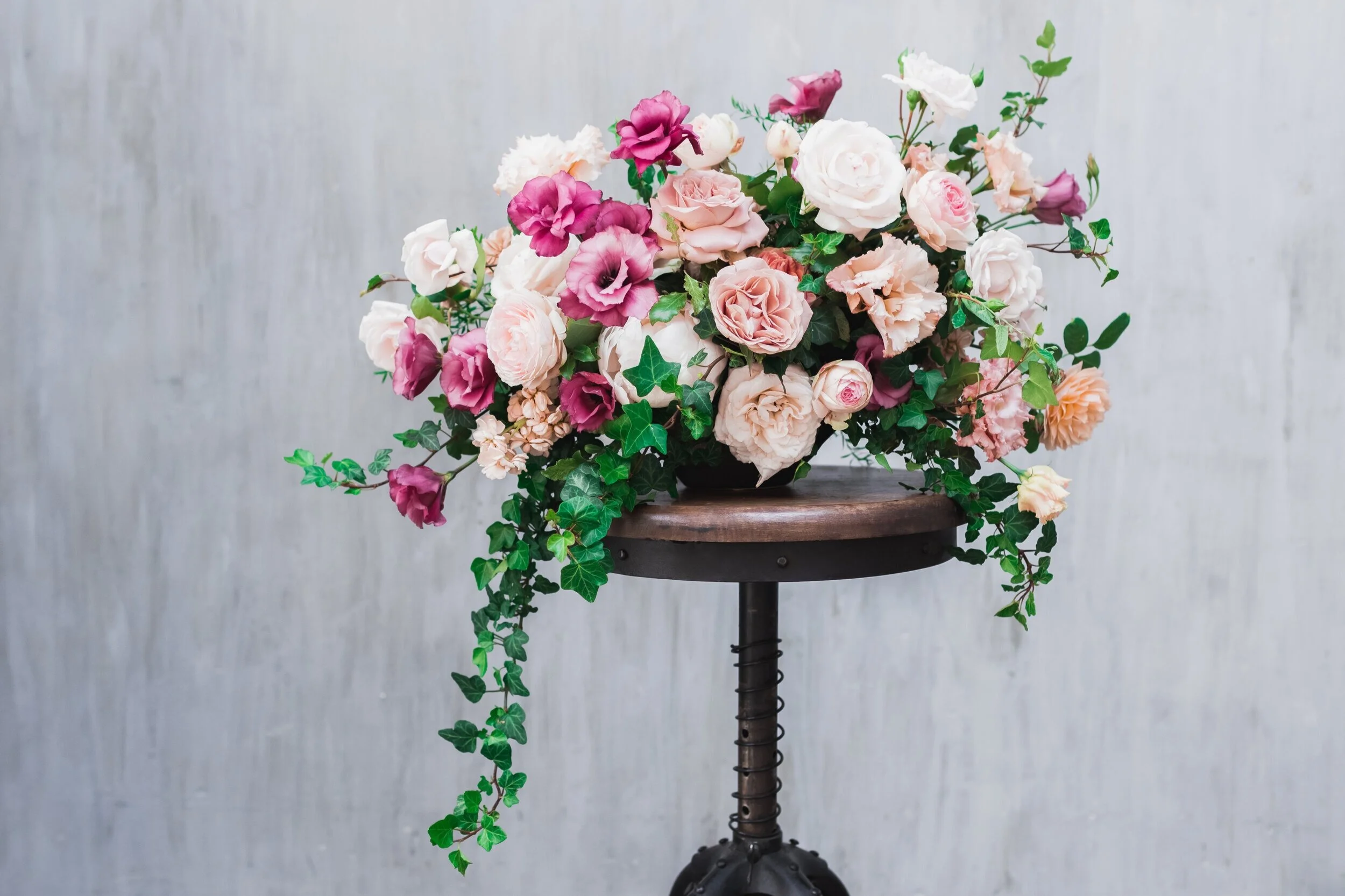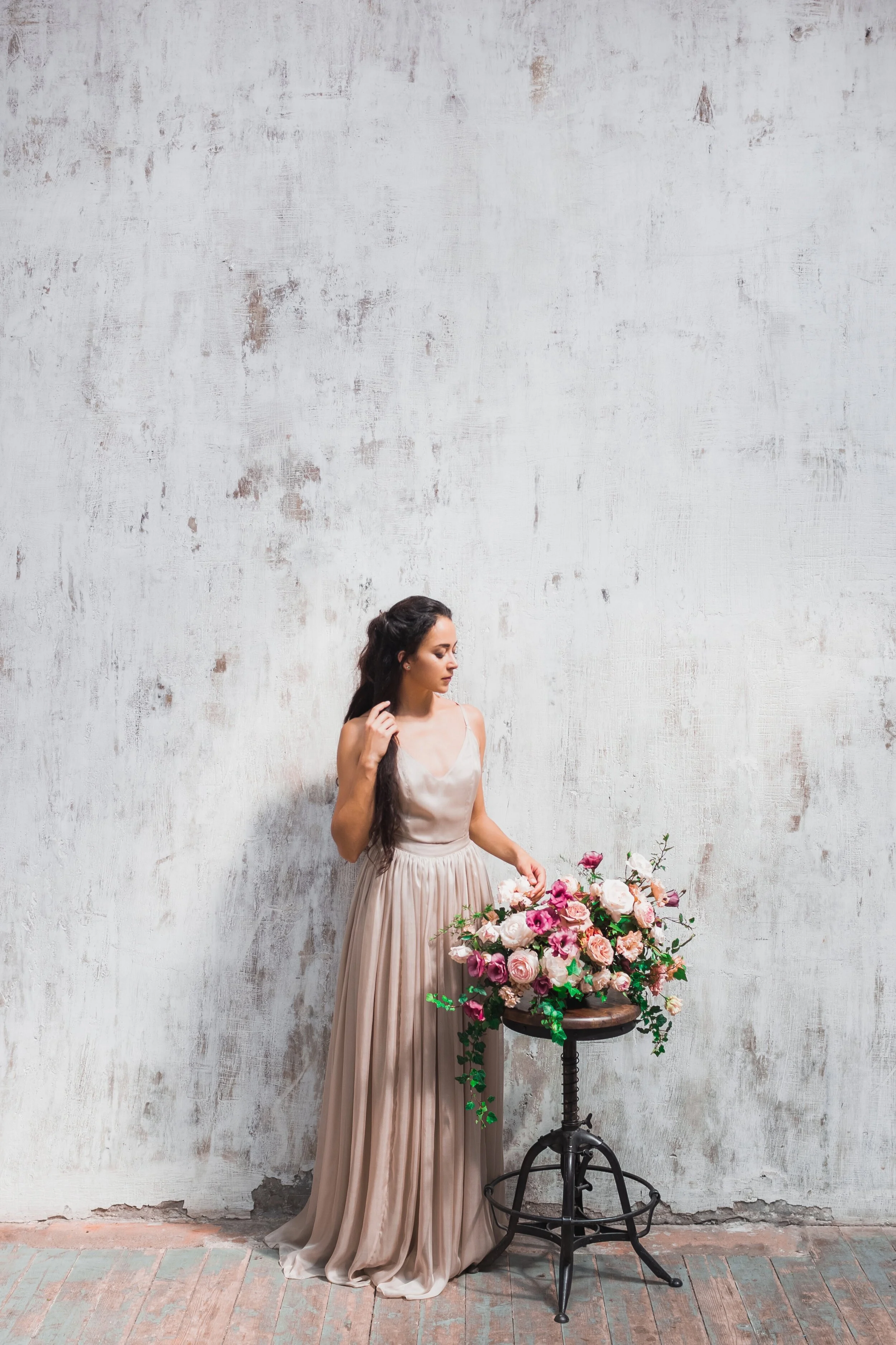 These taupe and deep mauve pairs so well with the fuchsia. I haven’t had a chance to work with this floral palette in quite some time - and it has me all kinds of giddy. I used an abundance of the same type and colors of flowers to really make a large impact - and keep the cost of the shoot manageable. The ivy and greens were locally sourced from the student botanical gardens.