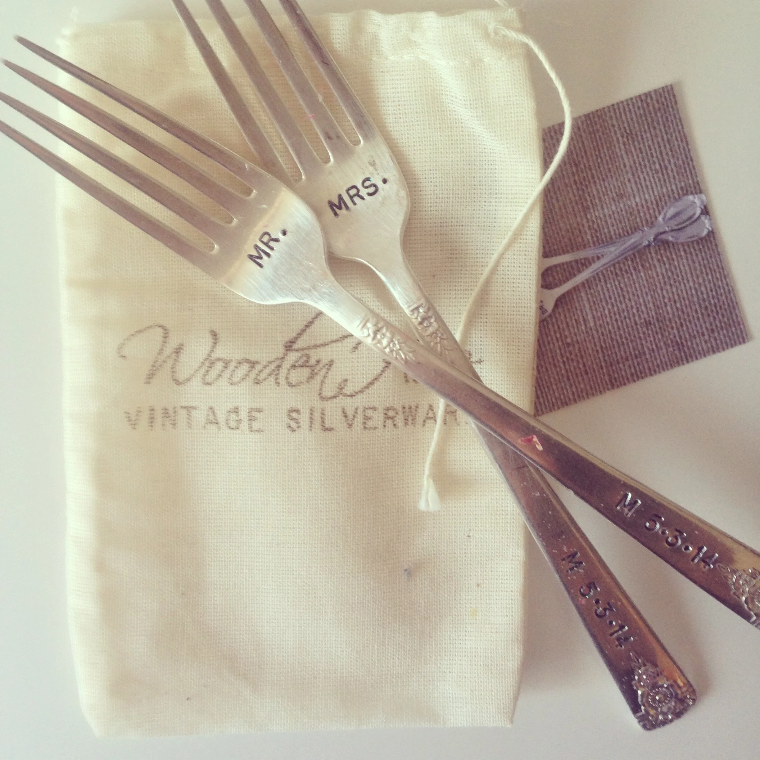 If you lovelies are anything like me you love a good dose of confetti, pretty, and sparkle. Add a dose pretty and happy snail mail and I'm as giddy as a school girl. Today's Instalove is a little peek into my new brand and a little Cassandra love that is going out to all my wonderful 2014 clients, as "happy-to-have you" gifts. I just cannot wait for my couples to get these and hopefully love them as much as I do. Those forks!! I am just smitten with these. I have looked for a long time for forks that I love and these, these hit the nail right on the head! Kerrie at Woodenhive does such an incredible job with these – and having them personalized for couples, in my little opinion makes them so very special.